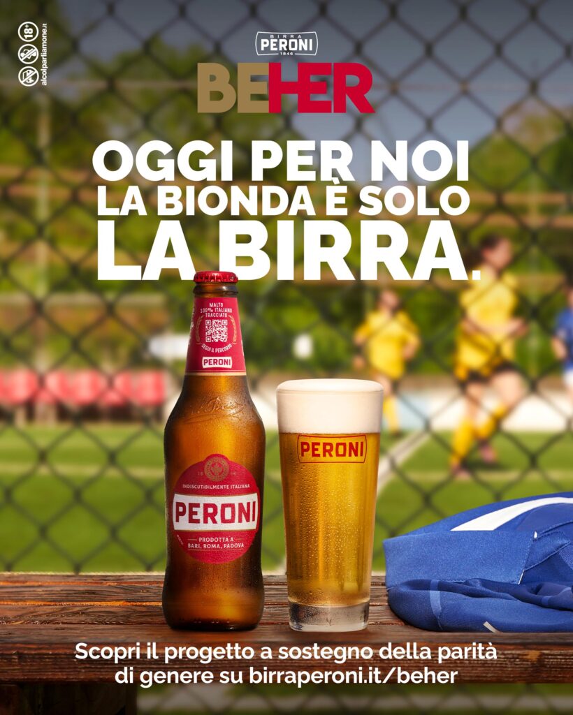 Proprio per via dell’impegno che l’Azienda si propone di perseguire, è nato un progetto il cui nome è BeHer che riguarda direttamente il sostegno nei confronti della parità di genere, un tema che di riflesso si ritrova anche nello sport e, in particolare, nel calcio femminile. La filosofia di fondo di questo progetto prevede cinque pilastri di base: «BeHer è un progetto nato per contribuire a un cambiamento culturale profondo sul tema della parità di genere, con un focus sul mondo del lavoro, attraverso la sensibilizzazione e il supporto concreto per superare stereotipi e differenze ancora in essere nel nostro Paese. Si struttura in 5 pilastri fondamentali – Informazione, Approfondimento, Promozione, Sostegno Diretto e Comunicazione – ciascuno dei quali rappresenta un ambito attraverso cui Birra Peroni contribuisce attivamente al tema, con il costante supporto e la supervisione di un Comitato Scientifico dedicato.»