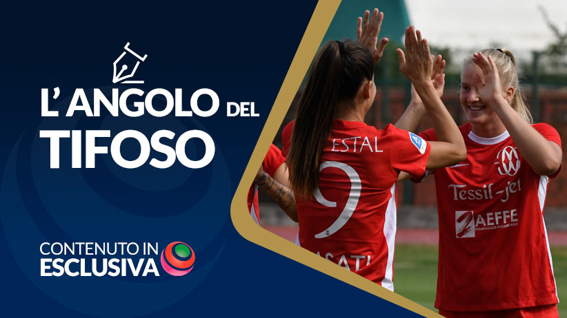 In attesa che cominci la partita, si scambiano due chiacchiere con l’ex calciatrice Katia Serra, adesso telecronista sportiva e con il CEO della società Como Women, Victoire Cogevina