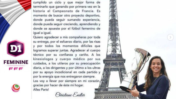 La cilena Christiane Endler annuncia con un post sui social l’addio al Paris Saint-Germain dopo una permanenza di quattro anni. Lascia il PSG dopo aver conquistato una Coupe de France Féminine nel 2018 e un campionato di Division 1 Féminine proprio in questa ultima stagione 2020/21.