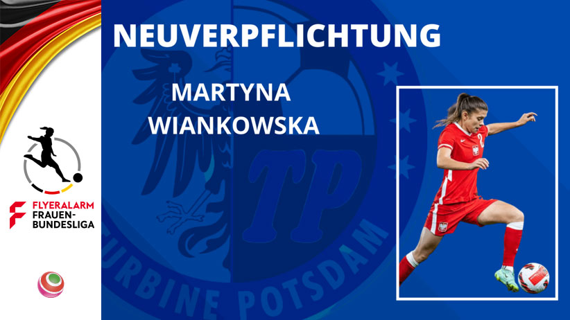 Dalla prossima stagione, l’1. FFC Turbine Potsdam accoglierà Martyna Wiankowska nella rosa della prima squadra della Bundesliga. Il centrocampista 25enne è una nazionale polacca e negli ultimi anni ha giocato più volte con la nazionale polacca negli Europei femminili e nelle qualificazioni ai Mondiali femminili. Ha anche giocato in UEFA Women’s Champions League la scorsa stagione con il suo club attuale, Czarni Sosnowiec. “Sono molto felice di entrare a far parte di questa squadra. È una grande sfida e un lavoro enorme per me. Ci vediamo in campo!”, ha detto Martyna Wiankowska a proposito del suo nuovo impegno con Turbine Potsdam.