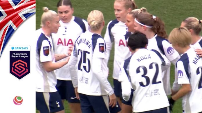 Il Tottenham ha avuto la meglio in una partita emozionante contro l’Aston Villa in cui sono 10 i gol segnati tra le due squadre (7-3).  Signe Gaupset ha aperto le marcature dopo 10 minuti, superando il portiere dell’Aston Villa Ellie Roebuck sul primo palo e segnando il suo primo gol da quando è arrivata al club dallo SK Brann il mese scorso. Il Villa ha pareggiato cinque minuti dopo, quando Kirsty Hanson ha sfruttato un passaggio filtrante di Noelle Maritz per segnare il suo ottavo gol stagionale in WSL. Il Tottenham ha poi preso il comando con due gol in sette minuti: il tiro di Bethany England è stato deviato da Anna Patten e ha superato Roebuck (19′), mentre Olivia Holdt ha segnato in maniera imprendibile per il portiere avversario (26′). Dopo mezz’ora di gioco, il Tottenham aveva già effettuato 10 tiri, metà dei quali in porta.