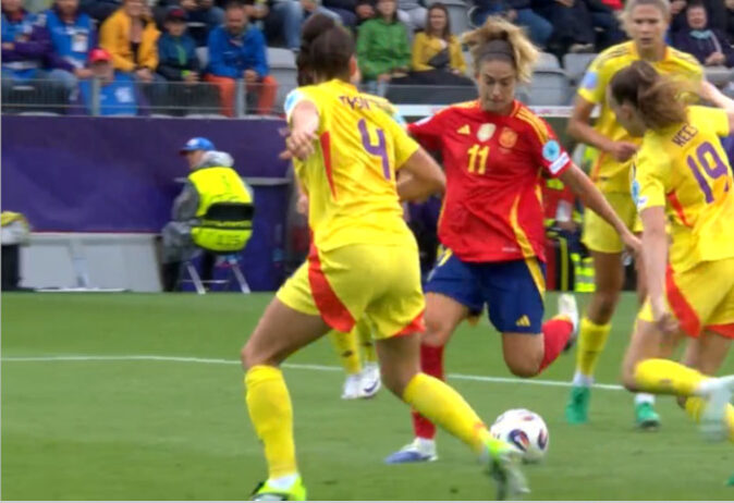 Veniamo alla partita di ieri: ancora Nanclares in porta, unico cambio al centro della difesa con Irene Paredes con Laia Aleixandri, sempre Olga Carmona e Ona Battle sugli esterni. Confermati centrocampo e attacco. In mezzo Vicky Lopez, Patri Guijarro e Alexia, davanti Esther Gonzalez al centro con Claudia Pina e Mariona Caldentey sugli esterni. Al 21° scambio al limite dell’area, Vicky passa ad Alexia che con il collo del piede batte il portiere belga. Le Fiamme Rosse pareggiano su calcio d’angolo ma sempre su corner ecco Irene che svetta di testa per il 2-1 per la Spagna. Le belghe devono almeno pareggiare per avere chances nell’ultima sfida e all’inizio della ripresa ci riescono con un veloce contropiede ben finalizzato da Eurlings. Entra Aitana, su una bella azione dalla destra ecco il 3-2 iberico con un preciso diagonale di Esther Gonzalez che batte Lichtfus. Ancora su corner dopo una respinta belga, è Mariona Caldentey a mettere dentro il goal del 4-2 per la Spagna.