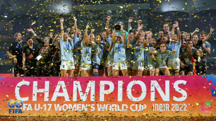 La Spagna è la vincitrice della FIFA Under 17 Women’s World Cup India 2022™. La Rojita ha battuto la Colombia 1-0 nella finale di domenica 30 ottobre. La vittoria della Spagna è arrivata a otto minuti dalla fine, quando un tiro in porta di Laia Mertrat è stato deviato dal difensore colombiano Ana Guzman.