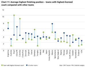 Ben il 93% degli allenatori ha una licenza da allenatore nelle massime leghe del calcio femminile del mondo, dove inoltre il 64% delle leghe richiede che l’allenatore della prima squadra della top serie abbia una licenza Pro o A.