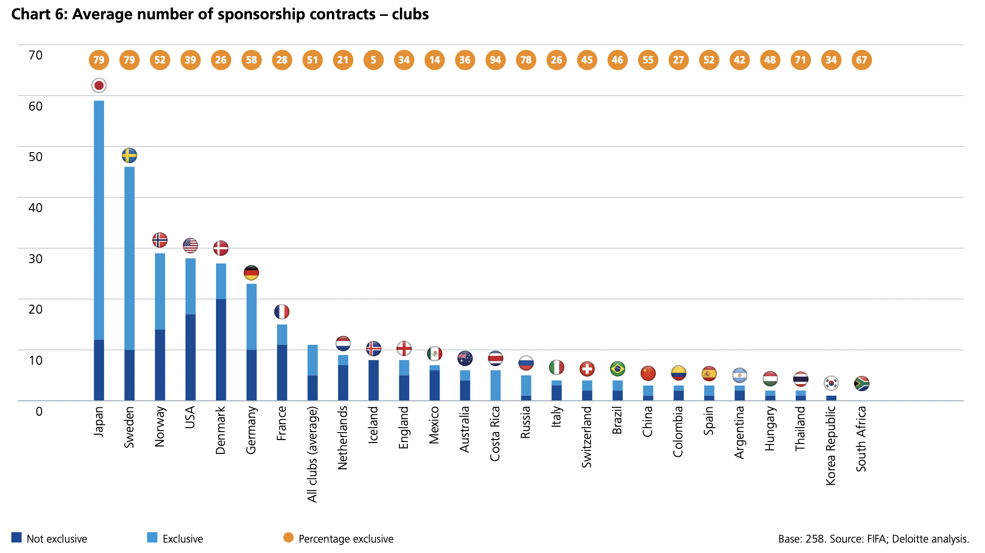 Il 72% dei club che ha sponsorships solo legati alla squadra femminile in media si genera $0.5m di fatturato e sponsorship da $0.2m.