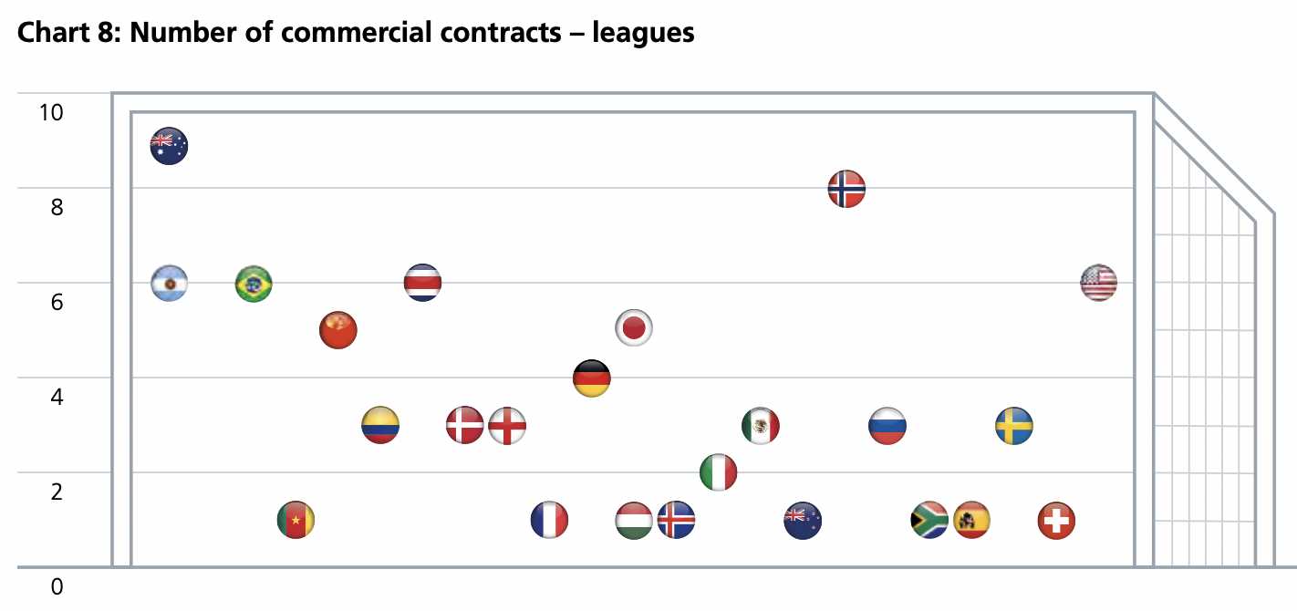 Il ruolo delle sponsorship nel mondo dello sport è sempre più rilevante e offre una risorsa di guadagno per un club. Nel calcio femminile vi è spesso (69%) una forte associazione a quello maschile negli accordi commerciali.