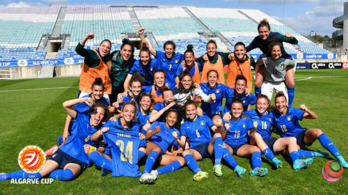 Italia (4-3-3): Durante; Lenzini (70′ Soffia), Orsi, Linari, Boattin (46′ Di Guglielmo); Galli (58′ Cernoia), Giugliano (68′ Rosucci), Caruso; Bonansea (78′ Serturini), Girelli (58′ Bergamaschi), Giacinti. Ct. Bertolini. A disp. Giuliani, Gama, Guagni, Simonetti, Glionna, Baldi