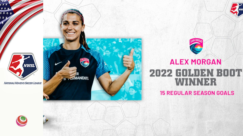 L’attaccante del San Diego Wave FC, Alex Morgan, vince il Golden Boot 2022 per avere concluso la stagione regolare della National Women’s Soccer League con 15 gol in 17 partite.