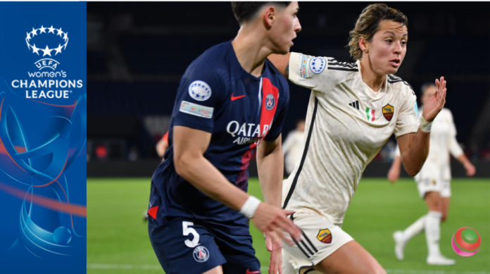 PSG sembra partire con il freno a mano tirato, un pò contratto, ma dal 18′ la squadra giallorossa si fa leggermente indietro abbassando il baricentro e iniziano i primi tentativi di conclusione delle ragazze parigine, due volte con l’esterno destro d’attacco Martens e poi con Katoto; l’estremo difensore giallorosso Ceasar risponde presente e si fa trovare pronta respingendo senza particolari difficoltà.