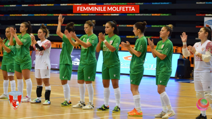 Mister Iessi è senza De Marco e Belam e l’avvio di gara è tutto delle padrone di casa che trovano il gol del vantaggio con Matijević al 3’30”. La reazione biancorossa è immediata, Luzi è superlativa due volte su Foti e poi su Bruninha, ma all’undicesimo ancora Matijević va a segno. Nel finale di frazione la Femminile Molfetta cerca in tutti i modi di trovare il gol, ma la Lazio è più cinica e scappa via nel punteggio con la doppietta di Taina e la sfortunata autorete di Ion.