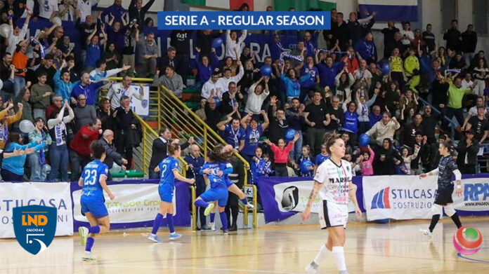 Tutto ancora aperto per il primato nella regular season. Lo Stilcasa Costruzioni Falconara sfodera una super prestazione casalinga e interrompe la corsa del Bitonto, che incassa il primo stop al termine della quindicesima giornata della Serie A Femminile: Ferrara e Isa Pereira ribaltano il vantaggio di Diana Santos, Nicoletti impatta, ma ancora capitan Ferrara e Sestari (proprio allo scadere) confezionano il 4-2 del PalaBadiali. Marchigiane sempre seconde a braccetto col TikiTaka che supera senza problemi il Lamezia (7-2 con 7 marcatrici diverse, doppio Jokisalo per le biancoverdi), bene anche la Femminile Molfetta, vittoriosa per 6-4 col GTM Montesilvano nello scontro diretto del PalaPoli: doppietta per Oselame così come per Vanessa, in gol anche Bruninha e Foti, tardivo il risveglio delle biancazzurre che accorciano nel finale col bis di Rozo. Riscatto doveva essere e riscatto è stato: l’Audace Verona dimentica Lamezia con un secco 4-0 ai danni della Kick Off (doppio De Cao, Puttow e De Angelis) e si prende il nono posto, proprio ai danni delle all blacks. Nella sfida del PalaPaternesi, importante passo verso la salvezza per l’Atletico Foligno che si aggiudica tre puntoni contro il Pelletterie, ancora fanalino di coda: Queiroz (che in precedenza si era vista neutralizzare un rigore) risponde a Corboli, poi il definitivo allungo umbro con Bisognin e Proietti.