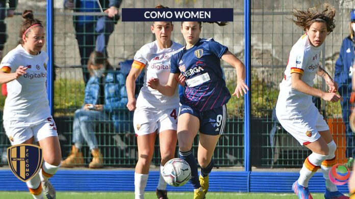 Al Comunale Giacinto Facchetti di Ponte Lambro, con un tutto esaurito da giorni, compatibilmente con le restrizioni Covid-19, il Como Women si presenta al cospetto della Roma a viso aperto. De la Fuente non è un tecnico che snatura il dna della squadra a cospetto anche di avversari più quotati, e non si chiude arroccato come si potrebbe immaginare. E così il Como Women è sceso in campo con personalità, guidato da un capitano di grande carisma come Giulia Rizzon, autrice di una gara eccellente, come d’altronde tutta la squadra. Rispetto alla partita contro il Sassuolo, forse sorpreso dalla prestazione comasca, l’intelligente tecnico delle romane Spugna ha saputo far tesoro del precedente e ha schierato una squadra concentrata e che di certo non ha sottovalutato, seppur sofferto, la qualità della squadra lariana.