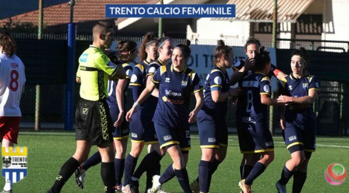 Nel primo tempo, infatti, il Trento si è trovato in vantaggio di due gol rispetto alla squadra ospite (8′ Antolini e 13′ Chemotti) poi la rimonta del Meran Women con la doppietta di Nischler (31′ e 41′).