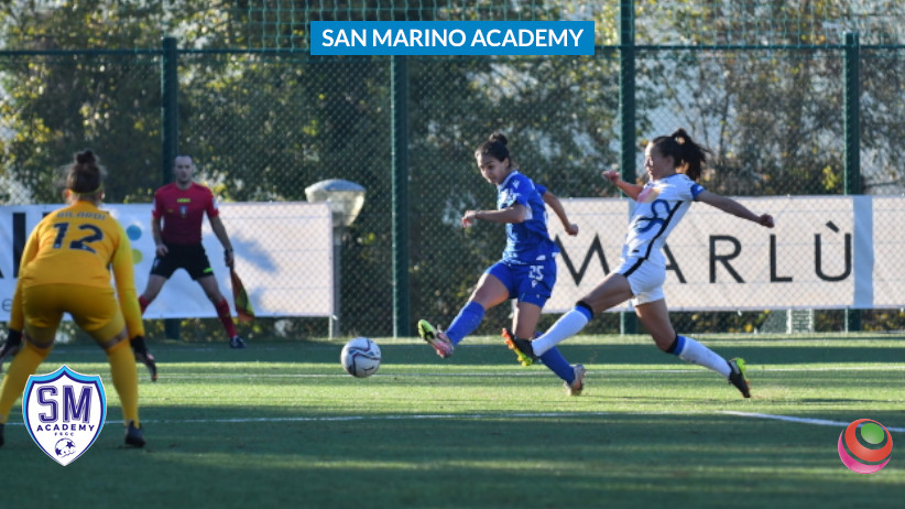 La partita scivola via fino al termine dei tre minuti di recupero, quando l’Inter trova anche la terza marcatura – la più bella del pomeriggio. La ripartenza fulminea di Portales schiude al terzo assist di giornata, questa volta a beneficio di Elisa Polli che spolvera l’incrocio dei pali con un mancino di rara potenza e precisione. Termina dunque con vittoria e qualificazione per l’Inter, ma a margine di una bella prestazione della San Marino Academy che – pur con qualche piccolo rimpianto – ha certamente dimostrato di poter tenere testa anche ad una formazione blasonata e qualitativamente importante come quella allenata da Rita Guarino.