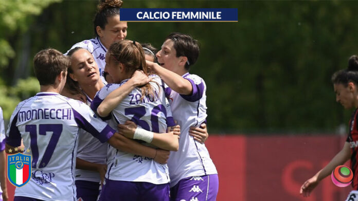 I posticipi della 20a giornata di Serie A TIMVISION si chiudono con le vittorie di Fiorentina, Roma e Inter. Spicca, tra le gare domenicali del terzultimo weekend di campionato, soprattutto il successo delle viola di Cincotta sulle rossonere di Ganz. Al “Vismara” il match si sblocca dopo appena 8’ con il gol dell’ex Sabatino: l’attaccante elude elude Fusetti con una grande giocata e batte Korenciova sul secondo palo. Al 14’ proprio Korenciova è protagonista dell’episodio che rompe gli equilibri: il portiere milanista esce per contrastare l’avanzata di Monnecchi ma la stende in modo irregolare e l’arbitro estrae il cartellino rosso, lasciando la squadra in inferiorità numerica. Si vivacizzano le ospiti, che al 22’ sfiorano il raddoppio con Vigilucci su calcio di punizione ma il pallone finisce di un soffio a lato. Negli ultimi scampoli della prima frazione di gara anche Monnecchi va vicino al 2-0, ma la giocata che elude Fusetti e Agard trova l’opposizione decisiva di Piazza che devia in calcio d’angolo. Il raddoppio delle undici di Cincotta si concretizza però a inizio ripresa, al termine di una bella azione corale: Baldi riceve palla da Sabatino, punta Vitale e fredda il portiere rivale sul primo palo. Al 56’ Ganz toglie Tucceri e inserisce Salvatori Rinaldi, altra ex della partita. Cambio vincente, considerato che dopo pochi minuti è proprio lei a guadagnarsi un calcio di rigore per un dubbio tocco di Breitner col gomito. Sul dischetto va la capitana Giacinti che trasforma e mette a referto la 18a marcatura in campionato. Sull’entusiasmo del gol, le rossonere intensificano il pressing e si fanno pericolose con una serie di tentativi dalla bandierina, ma soprattutto con la conclusione di Fusetti al 70’ da distanza siderale che dopo l’intervento prodigioso di Schroffenegger centra la traversa. Le padrone di casa insistono in attacco anche grazie alla vivacità della subentrata Hasegawa, ma nel loro momento migliore le ospiti calano il tris in contropiede: cross dalla fascia sinistra di Adami, sponda di testa di una ispiratissima Sabatino e destro vincente di Vigilucci, che col suo primo gol in questa Serie A chiude il match del “Vismara”. Il Milan incassa la terza sconfitta nella competizione in corso e soprattutto rischia di compromettere il secondo posto in classifica, utile per l’accesso alla Champions League 2021/22. Il ko di questo turno ha infatti consentito al Sassuolo di portarsi a -3 dalle rossonere, con cui la prossima settimana ci sarà lo scontro diretto. Difficile pensare che la squadra di Ganz non chiuderà la stagione alle spalle della Juventus, ma per la certezza matematica servono quattro punti negli ultimi due turni.
