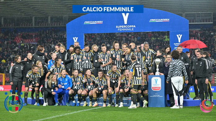 A Cremona la festa è tutta della Juventus. La squadra bianconera, dopo la sconfitta ai rigori del novembre del 2022 a Parma, torna ad alzare al cielo la Supercoppa Femminile Frecciarossa. Lo fa – ed è la quarta volta, dopo il tris tra il 2019 e il 2021 – grazie al 2-1 sulla Roma, che in Italia quest’anno aveva sempre vinto e che in competizioni nazionali non perdeva proprio da un’altra finale, quella di Coppa Italia giocata a Salerno ancora contro la Juventus. Dopo l’autorete di Viens e il pareggio di Kumagai, decisivo a inizio ripresa un capolavoro di Garbino, che ha fatto esultare la squadra di Joe Montemurro. Per la Juventus si tratta del 12° trofeo della sua storia, arrivato in un pomeriggio di grande festa, con oltre 6600 spettatori sulle tribune dello stadio ‘Giovanni Zini’, ma anche di ricordo, con il settore Distinti intitolato a Gianluca Vialli.