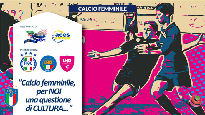 ‘Calcio femminile, per noi una questione di cultura…’ è il titolo dell’evento promosso e organizzato dalla Lega Nazionale Dilettanti Abruzzo che si terrà lunedì 2 maggio alle ore 17 all’Aquila, nell’Auditorium del GSSI, con la partecipazione di una delegazione azzurra formata dalla Ct Milena Bertolini e dalla capodelegazione Cristiana Capotondi. Gli aspetti culturali del movimento del calcio femminile accompagnano la parte agonistica dando forza al lavoro che si fa nei comitati regionali e nelle società, renderli il centro del confronto è parte integrante della strategia di crescita del settore messa in atto quotidianamente dalla LND Abruzzo. Questi i temi che faranno da filo conduttore agli interventi degli ospiti che interverranno nel corso del convegno, che rientra nell’ambito delle iniziative realizzate per “L’Aquila Città Europea dello Sport 2022”.