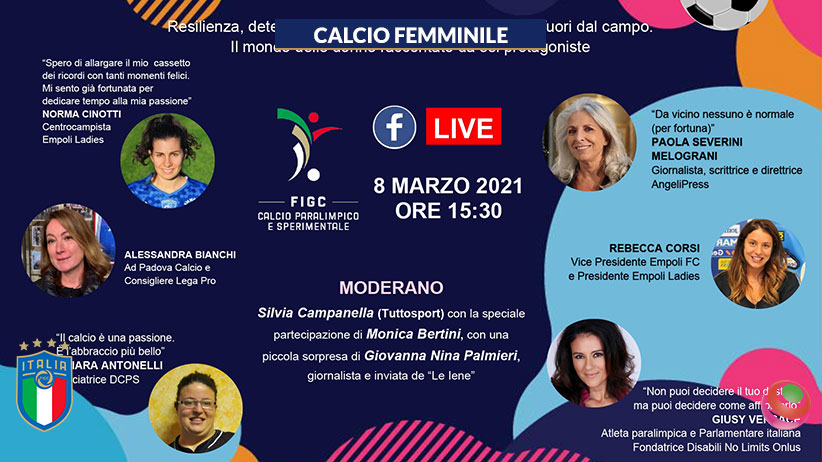 “Da chi ripartire se non dalle donne?”, è questo il titolo del webinar organizzato lunedì 8marzo alle ore 15:30 nel secondo appuntamento live sulla pagina Facebook della Divisione Calcio Paralimpico e Sperimentale tramite la piattaforma Cisco Webex Meetings nell’ambito delle iniziative ideate dalla DCPS per coinvolgere tutti i tesserati in percorsi alternativi alle competizioni calcistiche attualmente sospese.