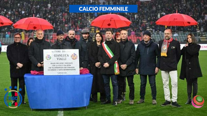 Un lungo ed emozionato applauso, le note del violinista Isaac Meinert ad accompagnare la cerimonia, e poi una targa, con la famiglia a svelarne il messaggio. “Grazie per averci insegnato che la vita é una sfida che va affrontata con coraggio, un sorriso e tanta determinazione”. Da oggi, il settore Distinti dello stadio ‘Giovanni Zini’ di Cremona, che ha ospitato la Supercoppa Femminile Frecciarossa, è intitolato a Gianluca Vialli, che a Cremona nacque il 9 luglio del 1964. Un anno e un giorno dopo la scomparsa di un grande uomo, prima ancora che un grande calciatore, il Comune di Cremona – presenti in campo il sindaco Gianluca Galimberti, l’assessore allo sport Luca Zanacchi, il presidente del consiglio comunale Paolo Carletti – e la Cremonese hanno voluto rendere omaggio a Vialli, che proprio allo stadio ‘Zini’ ha iniziato la sua straordinaria carriera.