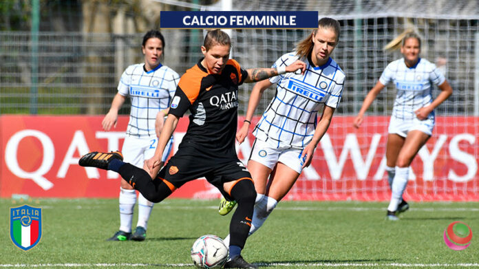 Vince, nel primo anticipo di giornata, anche la Roma contro l’Inter. A ‘Trigoria’ le giallorosse si impongono 4-3 al termine di una partita divertente e piena di emozioni da una parte e dall’altra. Sul campo delle capitoline partono meglio le padrone di casa, che dopo appena 13′ sbloccano il punteggio con Thomas: la francese, complice l’incomprensione difensiva di Alborghetti e Merlo, riesce a trovare il varco giusto nell’area di rigore interista e quando si libera spalle alla porta spedisce il pallone in porta con un gran colpo di tacco. Il raddoppio arriva poco dopo la mezz’ora di gioco con una bella azione corale: Swaby lancia Thomas sulla fascia e va a ricevere dentro l’area avversaria, e proprio sul cross della francese arriva il colpo di testa vincente del centrale difensivo. In avvio di ripresa si concretizza il tris con Ciccotti: sinistro dal limite, palo e niente da fare per Gilardi. Al 56′ le giallorosse non sfruttano l’occasione del poker: Lazaro resiste alla trattenuta di Merlo sulla trequarti, serve Serturini sulla fascia che a sua volta crossa a perfezione per Giugliano in mezzo; la centrocampista però non impatta bene e sotto porta si divora la rete del 4-0. Al contrario di quanto accade al 61′, quando sono le ospiti ad accorciare le distanze: cross preciso di Merlo dalla fascia destra, Tarenzi (subentrata a Mauro al 50′) prende le misure e trova un’incornata chirurgica che vale l’1-3; le ragazze di Sorbi provano a riaprire la gara ma al 65′ Montesano (oggi in panchina al posto di Betty Bavagnoli alle prese con una sindrome influenzale per ora non riconducibile al Covid-19) fa il cambio decisivo togliendo Giugliano e mettendo Banusic: dopo sette minuti è proprio la svedese a portare le capitoline sul 4-1 con un’incredibile rovesciata su assist di Serturini. Le padrone di casa sembrano in totale controllo del match ma al 77′ le nerazzurre vanno ancora a segno con Pandini, “dimenticata” da Thomas in area e brava a superare di testa Ceasar. Le capitoline si spengono nel finale e al 93′ c’è spazio anche per Marinelli sul tabellino marcatrici: gran palla dell’ex Simonetti, l’attaccante aggancia in due tempi e con un bel pallonetto d’esterno segna il definitivo 4-3. Sulla ripartenza giallorossa Bonfantini sfiora il 5-3, ma in quel momento l’arbitro fischia la fine e la Roma può festeggiare tre punti e il consolidamento del quarto posto in classifica, a 28 punti.