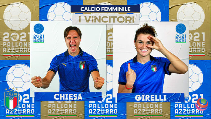 Federico Chiesa e Cristiana Girelli si sono aggiudicati il Pallone Azzurro 2021. I due attaccanti sono stati acclamati come i migliori dell’anno per la Nazionale maschile e per la Nazionale femminile dagli oltre 8000 voti espressi dai tifosi registrati al sito www.figc.it, che hanno preso parte al sondaggio dal 14 al 30 dicembre.