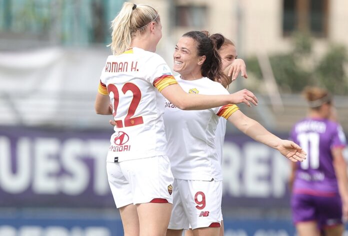 La Roma agguanta un successo fondamentale in ottica Champions e allunga a 14 la striscia di risultati utili in campionato. Nella sfida del “Bozzi” va in scena un match combattuto tra due formazioni con obbiettivi diversi ma con le stesse motivazioni. La Viola non riesce ad allungare sul Napoli nella parte bassa della classifica mentre le giallorosse blindano il secondo posto a +8 sul Milan (in campo contro il Pomigliano nel posticipo domenicale) a due giornate dalla fine del torneo. La sfida si sblocca al 24’ con Di Guglielmo, che con un’incornata vincente sfrutta il cross da calcio d’angolo di Andressa. Dopo otto minuti però l’arbitro punisce l’intervento di Kollmats ai danni di Catena con un calcio di rigore per le toscane. Sabatino non sbaglia dal dischetto e centra il 12° bersaglio in campionato, portandosi momentaneamente a +1 su Clelland. Il fronte si ribalta nuovamente al 64’ con il vantaggio giallorosso firmato di testa da Lazaro, ma le undici di Panico non demordono e al 75’, in seguito a una serie di tocchi, pareggiano con Vigilucci. La gara sembra indirizzarsi verso il 2-2, ma all’89’ i cambi di Spugna premiano le capitoline: altro corner, battuto da Giugliano, e colpo di testa della subentrata Haug, che vale il definitivo 3-2 per le ospiti. La vittoria in casa delle viola ha un sapore tutto europeo per la Roma, che ora è a +8 sul secondo posto – seppure il Milan debba ancora scendere in campo in questo turno – ed è vicinissima ad agguantare la sua prima qualificazione in Women’s Champions League. Tutt’altra sensazione invece in casa viola, considerato che la classifica dice quartultimo posto a +3 sul Napoli, che potrebbe agganciare proprio la formazione toscana in caso di successo nella complicata trasferta con il Sassuolo.