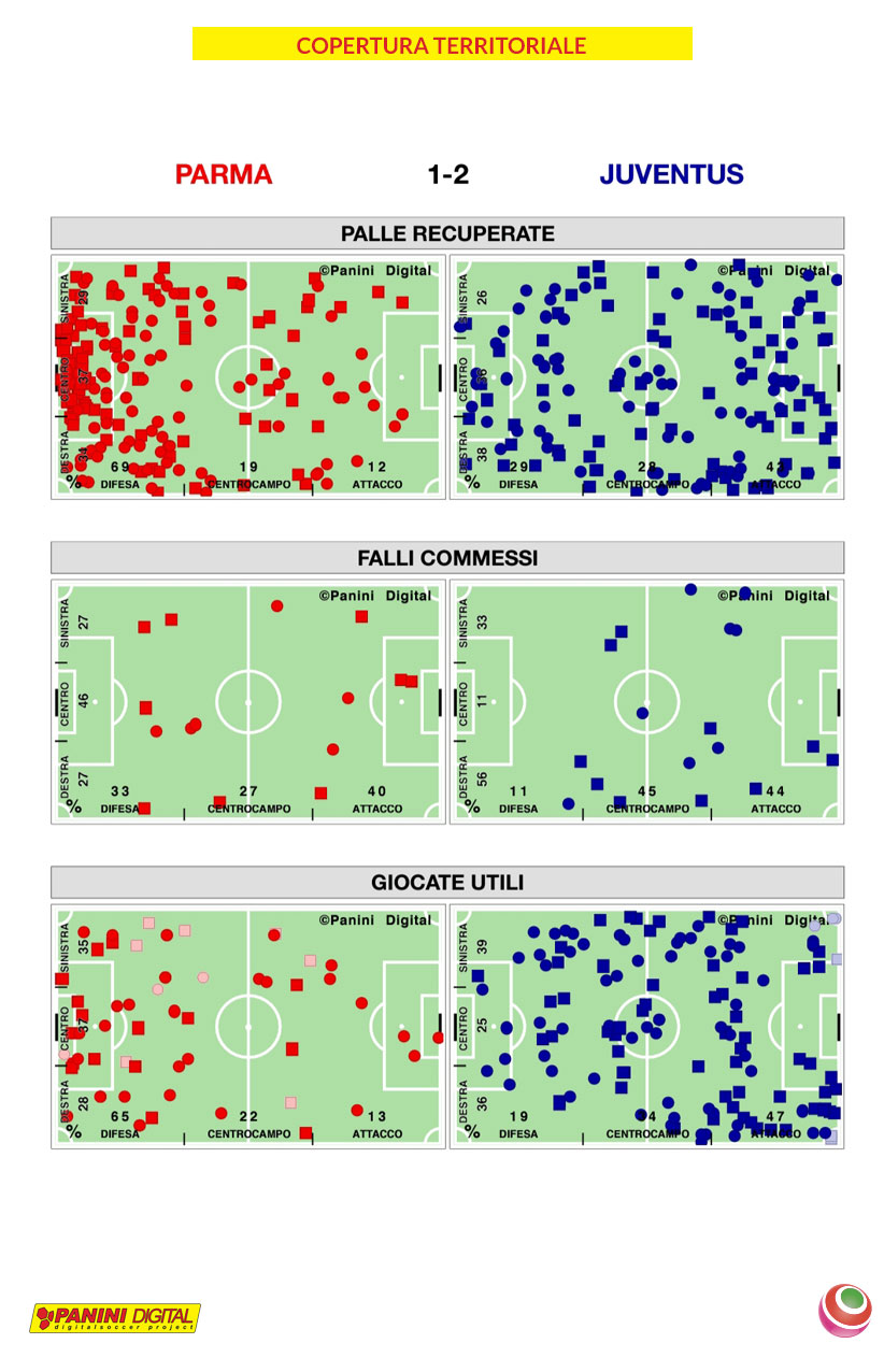 La Juventus supera, al Tardini, il Parma per 2 ad 1 in 100 minuti netti: mettendo a segno due reti tra il 92’ ed il 96’, ovvero nei 4 minuti concessi da Andrea Calzavara. Le bianconere certamente con un indice di valutazione di squadra di molto superiore, come ci evidenziano i dati della Panini Digital, un 73 con 27 che dimostrano l’alto indice tecnico espresso dalle ragazze di Montemurro.