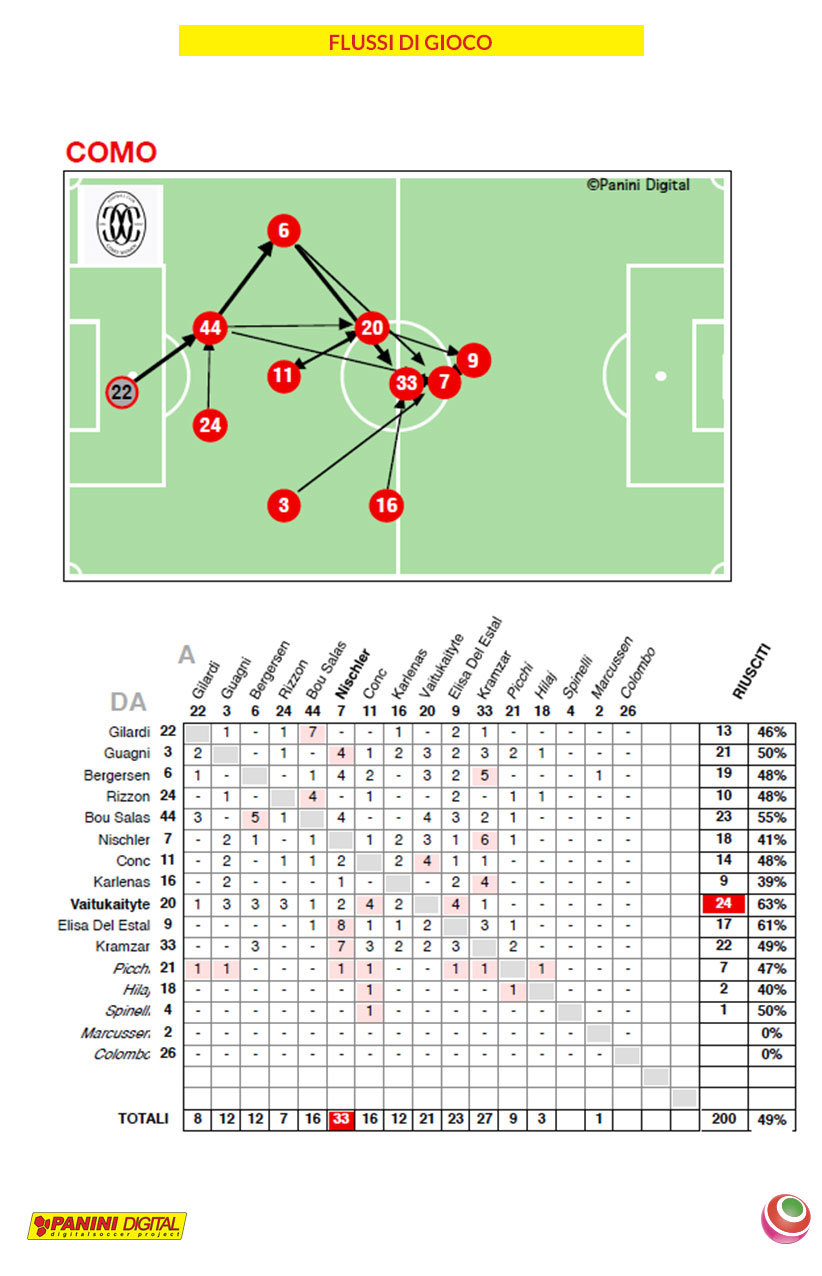 Il Como Women ha vinto per 1-0 in casa contro il Milan nel primo ultimo turno della Prima Fase di Serie A, grazie alla rete di Nadine Nischler al 19’ del primo tempo. Con l’aiuto di Panini Digital Soccer andiamo ad analizzare l’incontro.