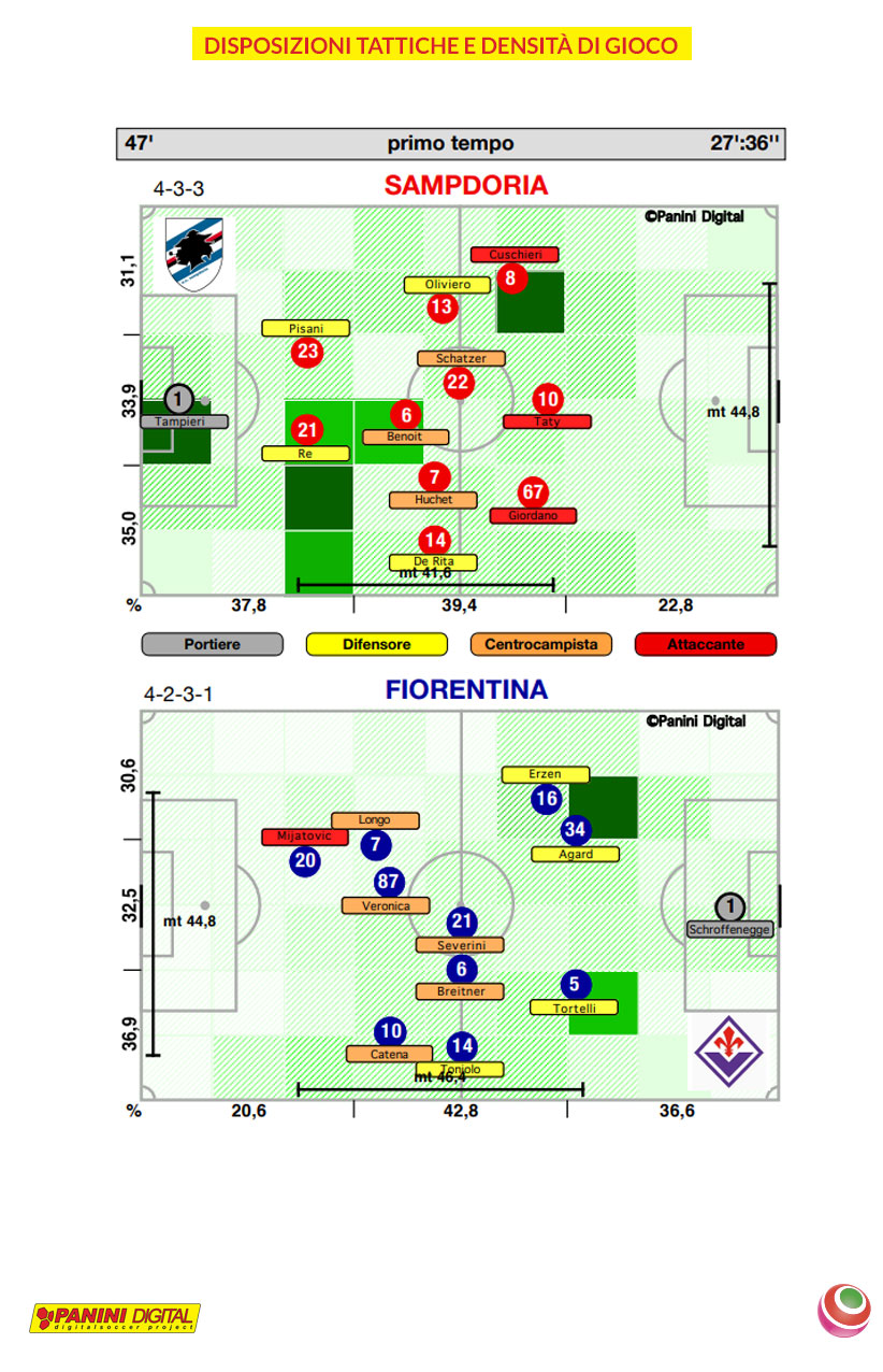 Le accelerazioni e le iniziative personali delle gigliate sono state più efficienti ed hanno prodotto pericolo in area avversaria: 61 sfere giocate in area (contro le sole 32 per la Samp) con un attacco alla porta pari al 58.1%. Infine i tiri, sia sui calci piazzati che in azione, si sono rilevati più precisi.
