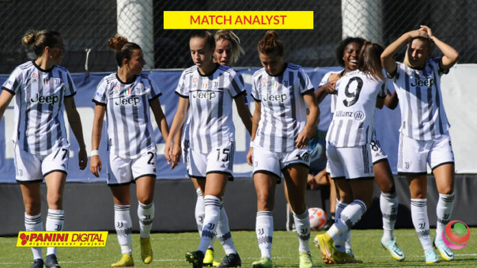 Una Juventus posizionata in campo con un baricentro molto basso, 42 mt nei primi 45 minuti, per poi alzarsi ai 55 del secondo hanno prodotto poco cercando sempre più di difendere che di attaccare. Infatti l’atteggiamento delle ragazze bianco-nere, in particolare modo quello visto nei primi 45 minuti, è stata di mantenere palla nella propria metà campo, gestire la palla e se necessario commettere fallo (ben 6 falli commessi) e recuperare le palle lunghe (temporanee e/o effettive).