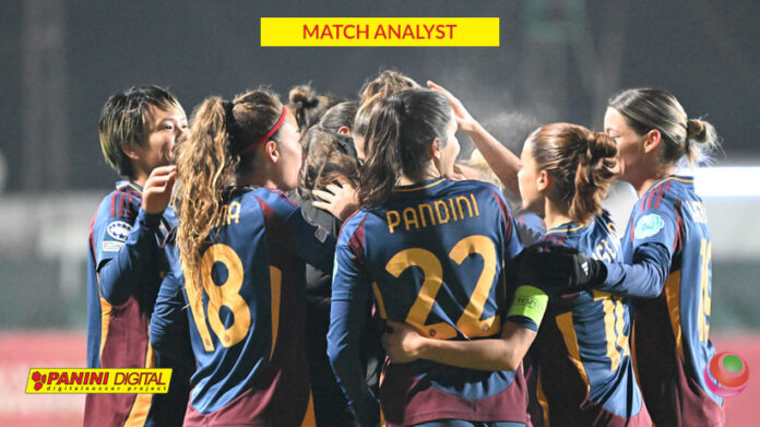 Dei 100’ minuti esatti (49+51) la Roma ha prodotto un 57% di possesso palla, contro il 43% per un numero di palle giocate anche maggiore: 535 contro 475. Sebbene il match si sia chiuso nella ripresa le ragazze di Alessandro Spugna hanno dimostrato una migliore qualità sui passaggi riusciti, ben 328 andati a buon fine, con un baricentro posizionato sui 57.7 mt. ed una supremazia territoriale per 12’ 21”.