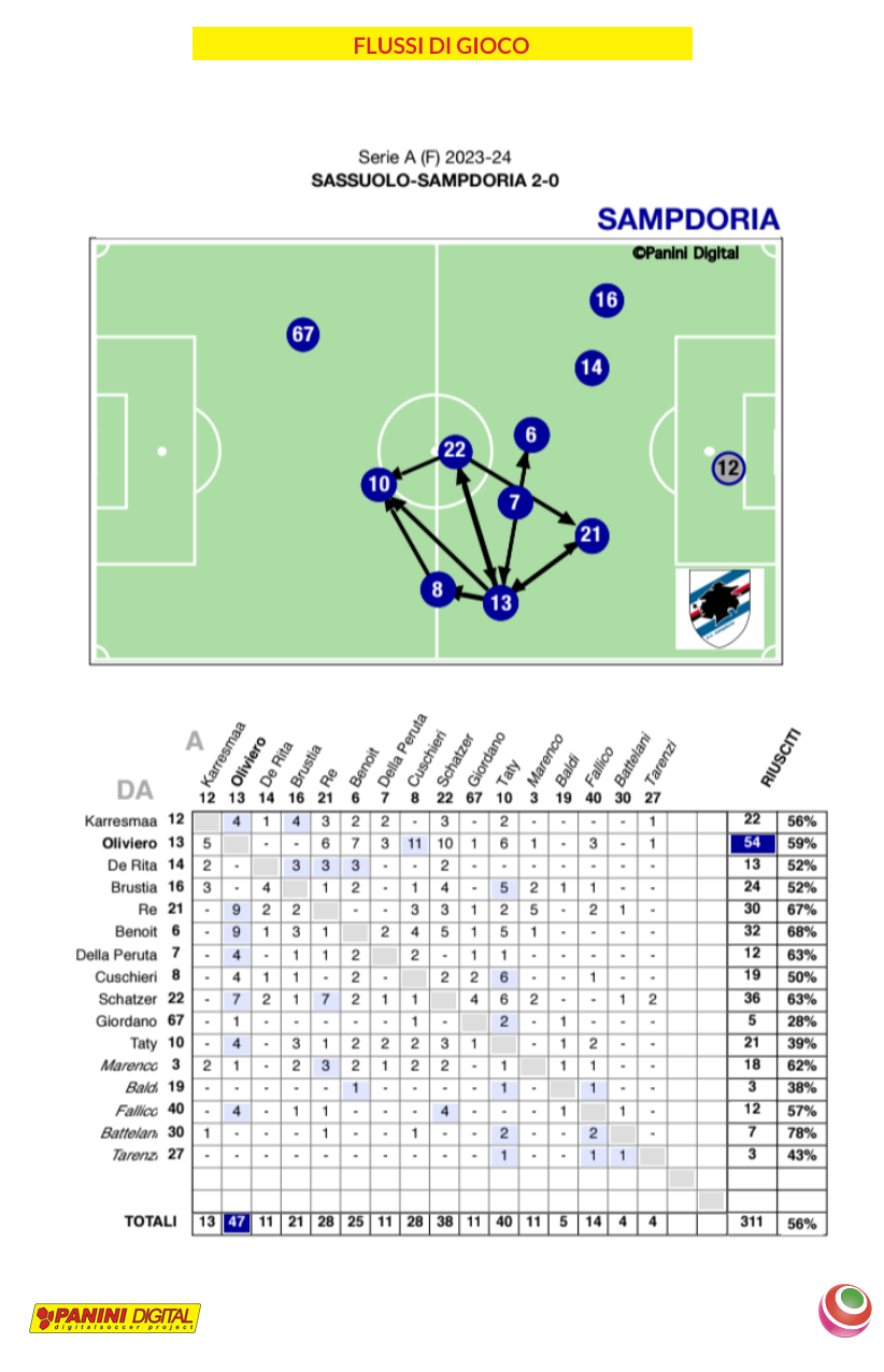 L’ultima giornata della Prima Fase è stata amara per la Sampdoria, sconfitta 2-0 dal Sassuolo sapendo già di partecipare alla Poule Salvezza. Con i dati Panini Digital, abbiamo avuto la possibilità di estrapolare velocemente alcuni dati molto interessanti sulle individualità delle Blucerchiate.