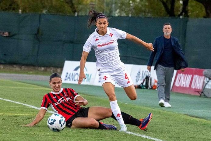 Sappiamo che non abbiamo altra possibilità che non sia la vittoria e siamo consapevoli che  la nostra permanenza in Europa nella prossima stagione passa attraverso la vittoria di questa partita. Non possiamo pensare molto in là, dobbiamo invece concentrarci su sabato  per conquistare i tre punti. Incontreremo il Milan per la sesta volta quest’anno tra campionato e coppa: ci conosciamo bene e dalla prima partita all’ultima che abbiamo fatto contro di loro abbiamo notato una crescita che ha permesso loro di arrivare alla poule scudetto. Procedono, forse, con qualche pensiero in meno, con meno da perdere rispetto alle altre squadre che erano lì a lottare ma sicuramente è l’unica che non ha mai perso. La sua crescita arriva in un momento forse spensierato o con voglia di vincere per agganciare il quarto posto o comunque migliorare la posizione in classifica. Ciò che è certo è che la squadra di Suzanne Bakker da continuità a quello che ha fatto fino adesso. Questa conoscenza profonda con le rossonere può essere un vantaggio perché sappiamo cosa possiamo dare e cosa possiamo fare. Io in questo momento vorrei vedere la solita Fiorentina, quella che mi piace di più e che ci ha portato a vincere contro Juve e Inter in questa poule scudetto”.