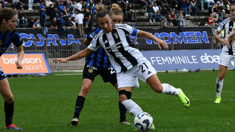 Primi minuti nelle mani della formazione ospite: la Juventus si fa subito pressante in area nerazzurra, impegnando la difesa casalinga. Da citare la particolare mossa di Runarsdottir che raddoppia la stretta del pallone e viene ammonita, offrendo una chance su punizione alle bianconere, per fortuna non finalizzata nel migliore dei modi e la preziosa punizione ottenuta dalla squadra di Milano, dopo un contatto su Lina Magull: nell’azione è la stessa bavarese a calciare ed a servire Serturini, intenzionata ad insaccare; brava qui Caruso a bloccare.