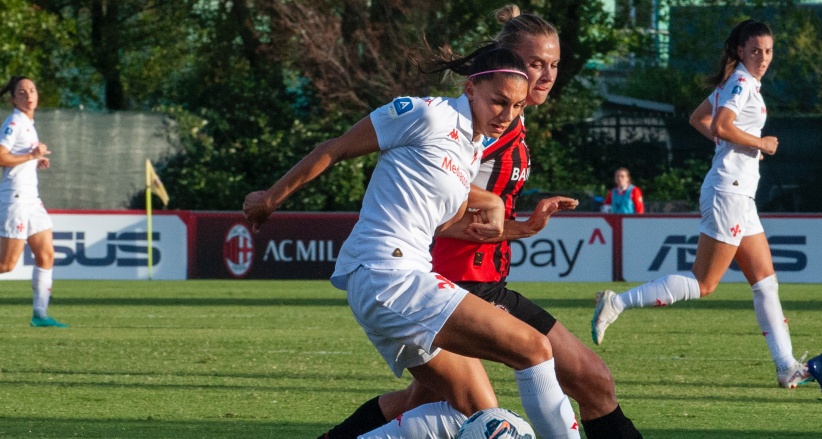 Il primo tempo si è svolto con un buon ritmo di gioco e possibilità per entrambe le compagini che, nonostante questo, non sono riuscite a trovare la rete del vantaggio. Se il Milan si è reso pericoloso dopo dieci minuti dal fischio d’inizio, le padrone di casa non si sono fatte trovare impreparate e in più occasioni hanno impensierito la difesa avversaria costringendo l’estremo difensore Laura Giuliani a ergersi per correre ai ripari. La più grande occasione gigliata al 42′ quando la conclusione di Bredgaard ha preso in pieno il palo. Dopo il 45′ sono stati concessi due minuti di recupero che a nulla sono serviti ai fini del punteggio: la prima frazione è terminata a reti inviolate