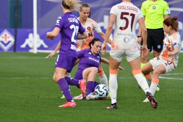 L’ultima partita di regular season di Fiorentina e Roma, giocata al Viola Park, si è conclusa a reti inviolate. Come pronosticato, e come sempre accade quando scendere in campo sono queste due squadre, la gara non è stata certamente semplice (complice anche la forte motivazione di entrambe le compagini in campo). Le padrone di casa, infatti, desideravano i tre punti per approcciarsi alla poule scudetto con il piede giusto: lo scopo è di agguantare una delle prime tre posizioni della Classifica così da competere il prossimo anno, in UEFA Women’s Champions League. Le ospiti, in questo momento terze in classifica, sono state chiamate a difendere la propria posizione e, perché no, a tentare di allungare insidiando il secondo posto dell’Inter (il cui match contro la Lazio è terminato in pareggio).