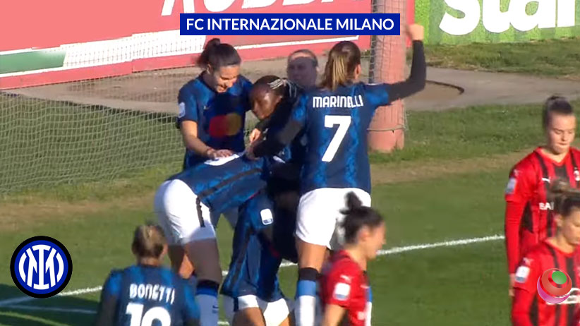 Al 6′ le nerazzurre hanno la prima chiara occasione da gol con Pandini che prova il tiro dalla distanza, ma il pallone termina di poco a lato. Ancora Inter all’11’ con una bellissima punizione a fil di palo di Tatiana Bonetti che impegna Laura Giuliani in un’importante parata. Il gol arriva però nell’azione successiva con Kathellen che salta più in alto di tutte sugli sviluppi di un calcio d’angolo e manda il pallone in rete con un gran colpo di testa. Il Milan prova a reagire ma è l’Inter che trova il raddoppio al 27′ con Ajara Njoya. L’Inter è padrona del campo è trova il 3-0 alla mezzora con un rigore, battuto di cucchiaio, da Ghoutia Karchouni. Allo scadere del primo tempo, il Milan prova a reagire con Giacinti, ma il tiro della rossonera si stampa sul palo.