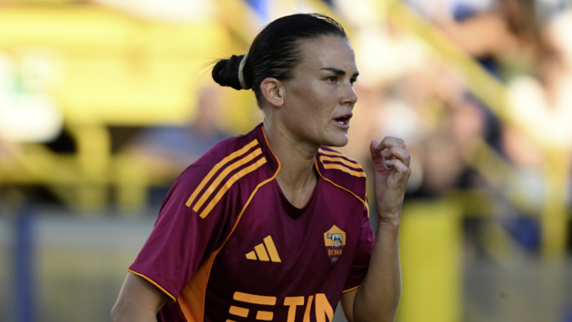 Tre vittorie su tre in campionato per la Roma guidata da Mister Luca Rossettini. Anche contro il Napoli le giallorosse si sono ripetute: dopo un primo tempo all’insegna di un certo equilibrio tra le parti, il gol di Giulia Dragoni in avvio di ripresa ha indirizzato il match verso la vittoria delle capitoline, tornate a casa con il bottino pieno e andando a consolidare un primo posto in classifica che dà fiducia e rende il gruppo ancora più affiatato. Malgrado le assenze importanti in ogni reparto, la Roma c’è, e l’ha dimostrato. Al termine del match a parlare ai canali ufficiali della Società è stata Katrine Veje.
