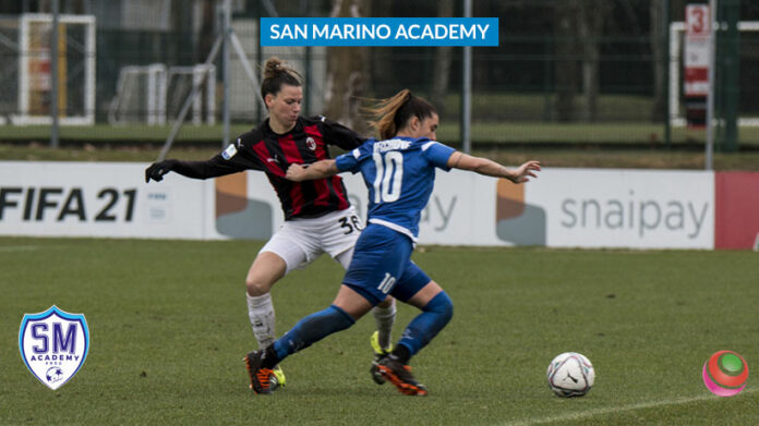 Al Vismara dunque termina con il successo da pronostico del Milan, tutt’altro che semplice per le Rossonere. Ottima prestazione dell’Academy, pienamente in partita per oltre un’ora di gioco ed in grado di passare in vantaggio con Corazzi. La maggiore cifra tecnica, la maggiore capacità di scelta e le superiori energie da cui poteva attingere Ganz hanno di fatto scavato il solco nella ripresa. Buoni riscontri comunque per le Titane, che vedono immutate le distanze dalle dirette concorrenti per la salvezza ed avranno tre settimane a disposizione per recuperare tutte le giocatrici e preparare la visita della capolista Juventus in territorio sammarinese del prossimo 28 febbraio