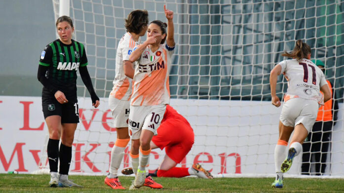 Battuta d’arresto della AS Roma, allo stadio Enzo Ricci, le giallo-rosse portano a casa un ulteriore pareggio (dopo l’1 a 1 del match di andata al Tre Fontane) con la rete di Manuela Giugliano su calcio di rigore.