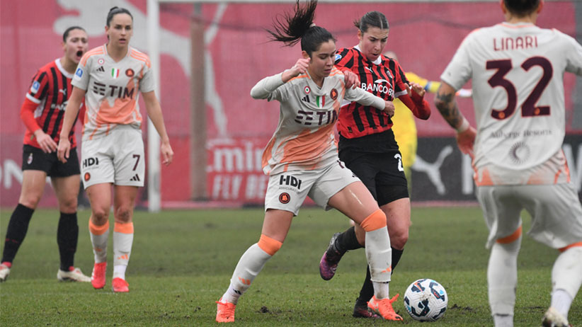 Capitoline subito aggressive trovano la rete del vantaggio grazie alla sua fantasista Manuela Giugliano che apre sulla destra a Thogersen, cross teso in area che trova la caviglia di Piga, palla a Viens che non ci pensa troppo e buca Laura Giuliani nell’angolo basso. Padrone di casa che accusano il colpo, si arretrano e lasciano campo alla Roma la quale genera molte buone giocate ma senza concretizzare troppo a rete. Alla mezz’ora il gioco si addormenta, ma ci pensa Iljeh: brava a siglare mettendo in porta il suo ottavo sigillo stagionale per un giusto pareggio. Un Milan che ha chiuso le ultime tre gare con tre pareggi consecutivi, con tre formazioni di alto livello, andando a bloccare rispettivamente Fiorentina, Inter e la capolista Juventus.