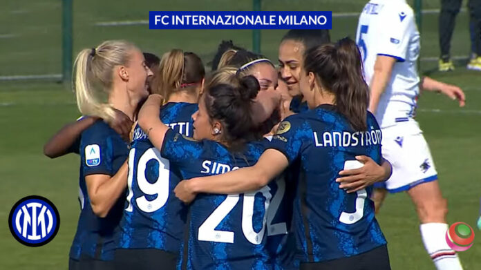 Le nerazzurre partono bene e trovano la rete dopo soli sei minuti con Henrietta Csiszàr: la Sampdoria perde palla a centrocampo e l’Inter ne approfitta nel migliore dei modi con Bonetti che firma l’assist per l’ungherese. Le nerazzurre continuano a spingere e trovano il raddoppio al 27′ con Gloria Marinelli che firma la rete dopo un bell’uno-due con Simonetti. La Sampdoria prova a reagire e accorcia le distanze con Fallico. L’Inter però continua a spingere e va all’intervallo con il risultato di 3-1 grazie alla perla di Ghoutia Karchouni da fuori area allo scadere del primo tempo.