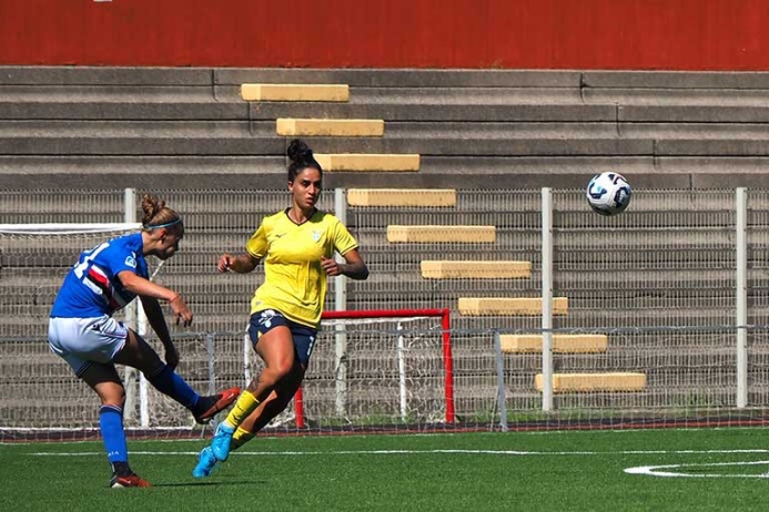 La prima frazione è stata parecchio combattuta, con una Lazio che è partita immediatamente aggressiva mentre le blucerchiate ne hanno arginato, come possibile l’assalto. Ad attestare questo andamento del gioco, l’occasione più limpida dei primi 45 minuti è stata della squadra ospite con Simonetti che al 24′ ha avuto la palla giusta per portare la squadra in vantaggio ma il suo poderoso destro ha scheggiato il legno della traversa facendo tremare (per motivazioni opposte) entrambe le compagini. Da questo momento, sino al 46′, nonostante i tentativi il tabellina è rimasto fermo sullo 0-0.