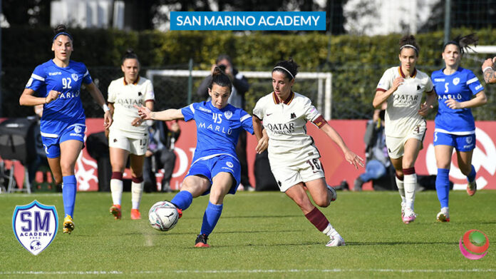 Una ripresa giocata in crescendo non evita alla San Marino Academy la seconda sconfitta consecutiva per 2-0. La Roma la sblocca a metà primo tempo ma poi non trova il gol della sicurezza – complice una Ciccioli in formato stellare – e questo consente alle Titane di rimanere aggrappate alla gara fino a minuti finali. In crescita dal punto di vista dell’iniziativa, le ragazze di Alain Conte costruiscono buone opportunità nella ripresa e – nel finale – si arrabbiano per un contatto in area con protagonista Barbieri, non reputato dall’arbitro meritevole del calcio di rigore. Si era al 4’ di recupero: sul ribaltamento di quell’azione, la Roma approfittava di un’Academy totalmente svincolata da pensieri difensivi per trovare un comodo raddoppio con Bonfantini.