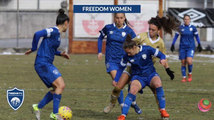 La partita si decide già nel primo tempo: la partenza ad altissime frequenze dell’Arezzo, già vicino al gol con Lazzari dalla distanza, riceve la pronta risposta dalla Freedom con Zazzera, che calcia di prima un pallone dalla traiettoria velenosa deviato sopra la traversa. Le biancoblù ci credono di più e passano in vantaggio al 7′ grazie al gol di Marenco, cinica dagli sviluppi di un calcio d’angolo. Berveglieri cerca il raddoppio dalla distanza, impegnando Di Nallo a deviare sopra la traversa un’altra conclusione insidiosa.