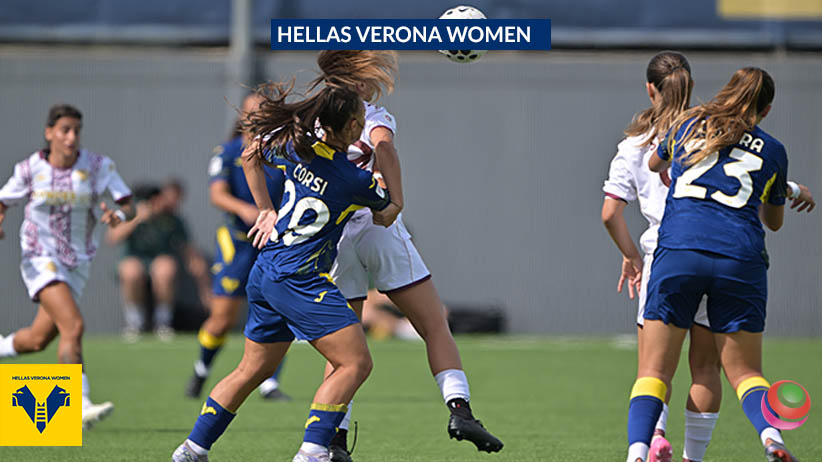 Passando alla cronaca, la gara si apre con le gialloblù che passano in vantaggio già al 5’: sul primo calcio d’angolo della partita, la battuta sul secondo palo trova Corsi, che calcia al volo verso la porta; sulla traiettoria interviene Maffei, che con un tocco sotto supera la numero 1 avversaria e firma l’1-0. Il Verona continua a spingere e al 23’ va vicino al raddoppio. Maffei raccoglie un pallone respinto dalla difesa avversaria e prova immediatamente la conclusione dalla distanza, ma il suo tiro si stampa sulla traversa.