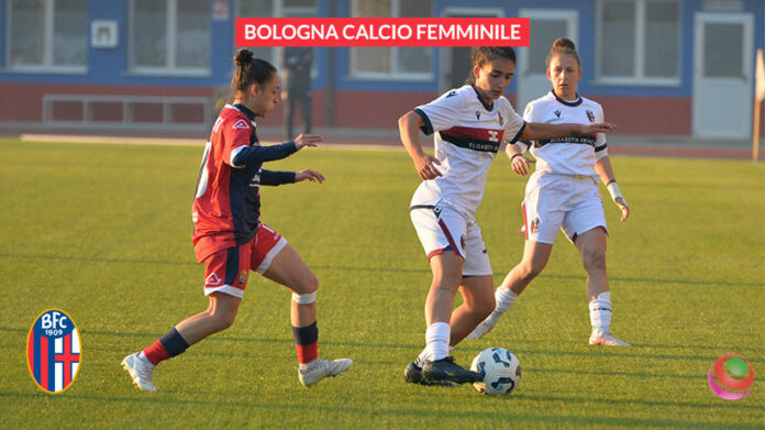 Il primo tempo si apre con una doccia fredda per le ragazze di mister Pachera: al 4’, Gelmetti chiama alla grande parata Frigotto, mentre un minuto dopo Pinna si inventa un gol da distanza siderale, trovando fuori dai pali Shore. Senza Kustrin e Sondergaard, il tecnico rossoblù ha optato per Colombo con Gelmetti e Zanetti (alla prima da titolare in stagione) in un attacco che fatica a trovare spazi in mezzo alla difesa lombarda, chiusasi in seguito alla rete del vantaggio. Pinna, ancora una volta, va vicina al raddoppio quand’è il 20’; undici minuti dopo, invece, è sorriso Bologna. Colombo conquista un calcio di punizione interessante al limite dell’area che realizza Battelani, ingannando l’estremo portiere di casa sul suo palo. Da quel momento è monologo ospite, quasi concretizzato al 41’ da una bella trama che porta Zanetti alla conclusione, trovando la pronta risposta di Frigotto.