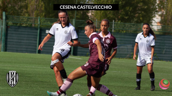 La prima conclusione delle ragazze di Roberto Rossi arriva solo al 24’: ottimo recupero a centrocampo di Cocino, la quale serve Fadda che, a sua volta, riesce a trovare Zamboni sulla trequarti. Telefonata centrale raccolta da Merolla. Crescono le romagnole col trascorrere della prima frazione: in primis, un cross sbagliato di Ciano termina di poco alto sopra al sette sinistro e, consumati i 120 secondi successivi, Zannini calcia centrale da buonissima posizione dentro l’area, col pallone che era rimasto in mezzo alla mischia. La prima frazione si chiude con una splendida incornata di Cruz da corner spedita di poco a lato e, a tempi regolamentari scaduti, Palombi commette un’ingenuità, non avvedendosi della presenza di Iannazzo completamente sola all’altezza degli undici metri, preferendo continuare l’azione personale in contropiede ma sbattendo contro il muro difensivo cesenate. Da sottolineare una chiusura meravigliosa del quartetto difensivo granata sul colpo a botta sicura di Catelli, pressoché in area piccola al 35’. Una componente prende il tempo alla play ospite e si immola letteralmente sulla conclusione destinata in rete.