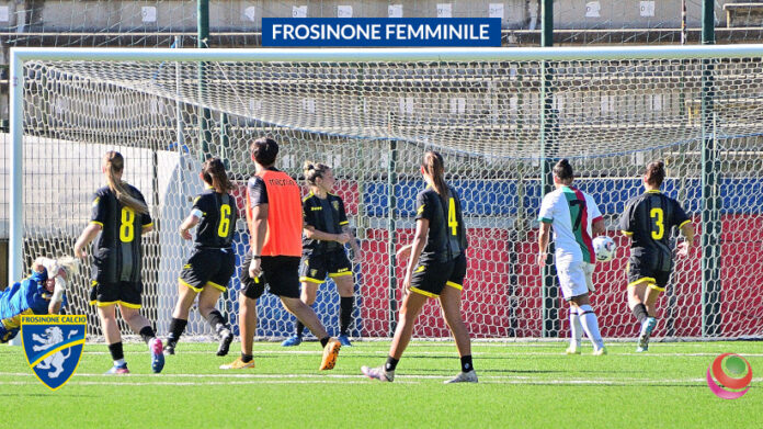 Le giallazzurre di mister Foglietta scendono in campo per l’ottava giornata del campionato di Serie B, in casa, alla Città dello Sport di Ferentino, contro la Freedom. Il Frosinone gioca bene, mostra compattezza e in diversi momenti prova a fare male alla formazione ospite. Le avversarie, però, nel loro momento di massima pressione trovano il gol del vantaggio: su un calcio di punizione battuto da Bianchi, il pallone non viene toccato da nessuno — nonostante i tentativi di Kaabachi e Pasquali — e sorprende Nardi, finendo in rete. Il Frosinone prova a reagire e a tornare in partita: Neddar, dal limite, calcia di destro ma la sfera viene bloccata dal portiere avversario. Poco dopo, ci riprova con una buona combinazione tra Cinquegrana e Battistini, ma il tiro viene deviato e diventa preda facile per l’estremo difensore della Freedom. Le giallazzurre continuano a pressare alla ricerca del gol del pareggio, ma il primo tempo si chiude con il parziale di 0-1.