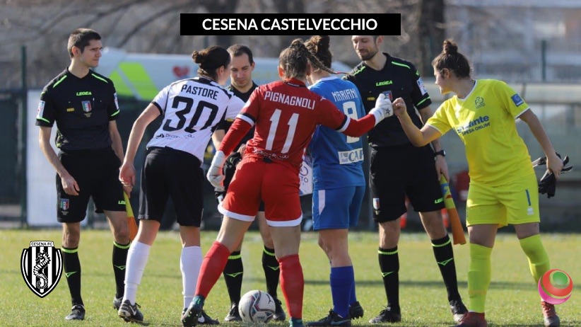 Primo tempo molto combattuto: dopo 58 secondi il Cesena si affaccia in avanti con Casadio che riceve palla da Bernardi, tiro a giro verso l’incrocio dei pali ma Selmi blocca al volo. Tra il 7’ e il 10’ i due estremi difensori si rendono protagoniste: prima Pignagnoli salva la porta da un velenoso calcio di punizione di Possenti, poi Dahlberg serve Costi che mira l’angolo basso ma Selmi risponde presente. La formazione lombarda torna all’attacco con Mauri che scaltramente sorpassa la linea difensiva ma viene ipnotizzata da Pignagnoli che esce e blocca l’azione. Altra occasione mangiata dalla Pro Sesto al quarto d’ora: Ploner serve Scuratti completamente libera, ma il suo calcio debolissimo finisce fuori di poco. Di nuovo Ploner dieci minuti più tardi carica il destro dai 25 metri: bellissima parata del portiere bianconero che fa finire il pallone sulla traversa e poi fuori dal campo. Al 38’ ribaltamento di fronte: Zanni serve di prima Casadei che porta sul fondo, tira direttamente in porta ma Selmi smanaccia fuori.